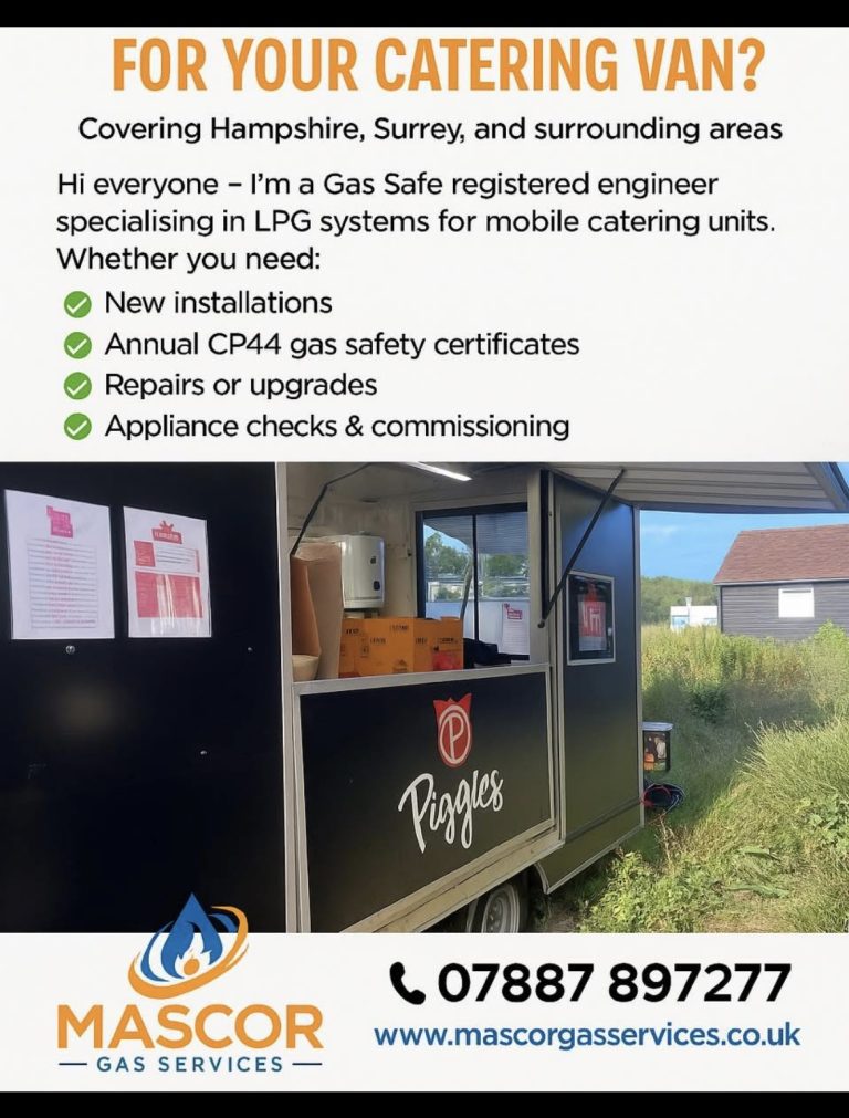 For commercial kitchen gas installations, LPG food van systems, or CP42 / CP44 certification, contact Michael at MASCOR Gas Services today.